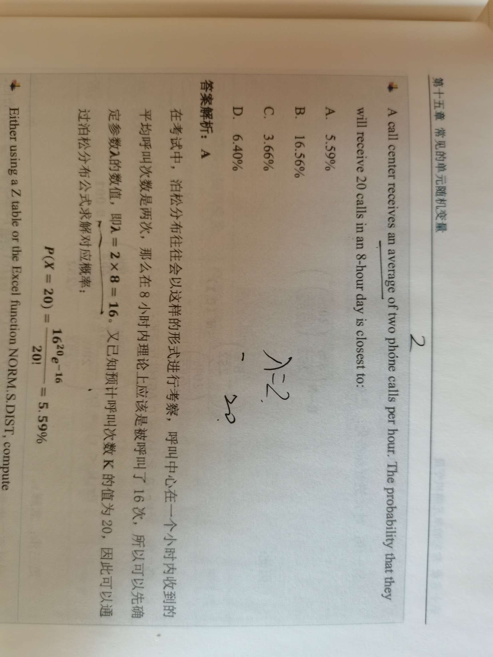 这里参数我认为不是16的原因在于 参数的定义为“单位时间内事件发生的平均次数”,这里的16是八小时内呼叫的次数 既不是单位时间也不是平均次数,所以我想问问助教老师对于这点的回复,感谢