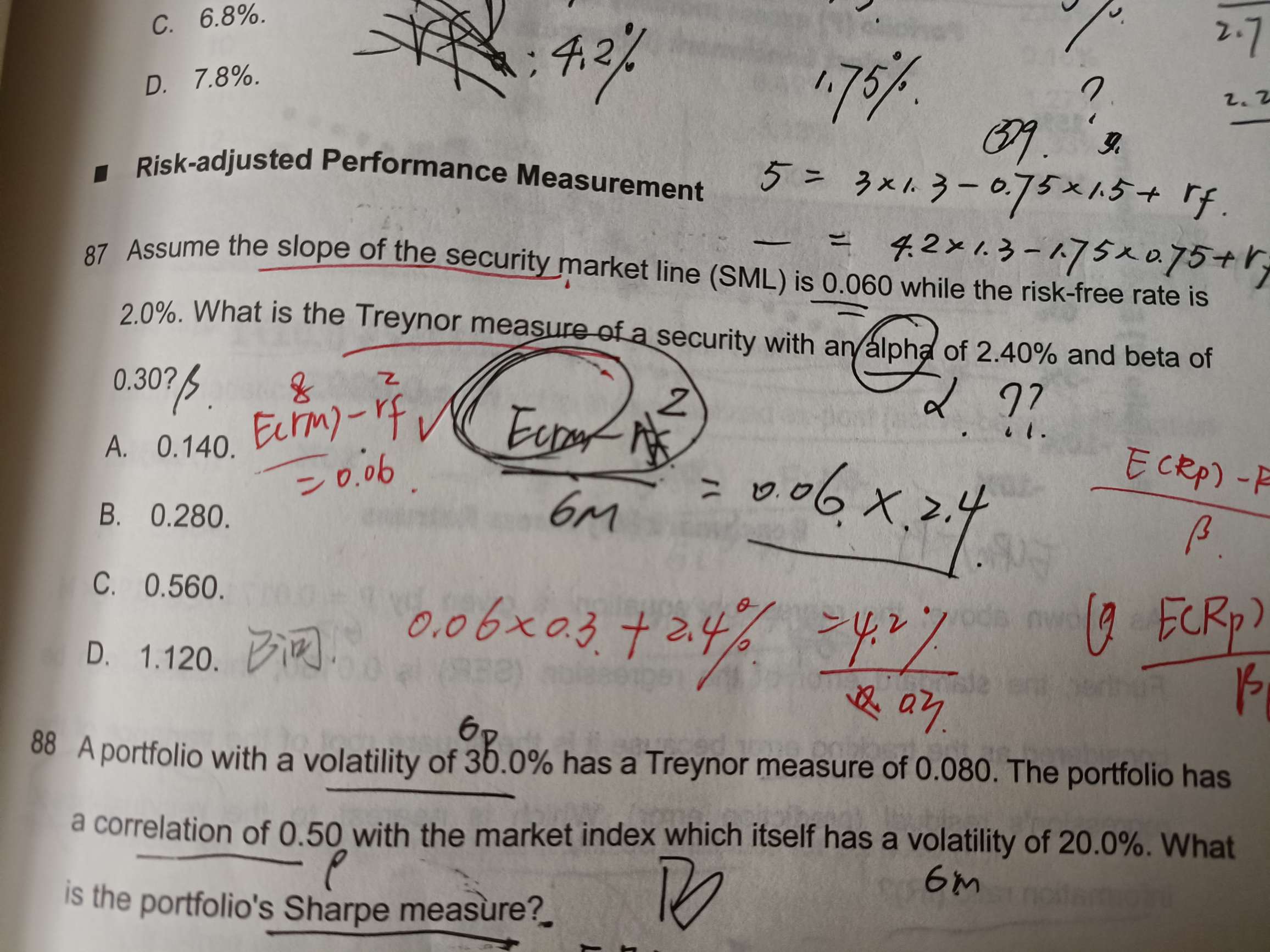老师好,请问这道题里面SML的斜率不就是Erm-rf嘛 为什么不是6-2?