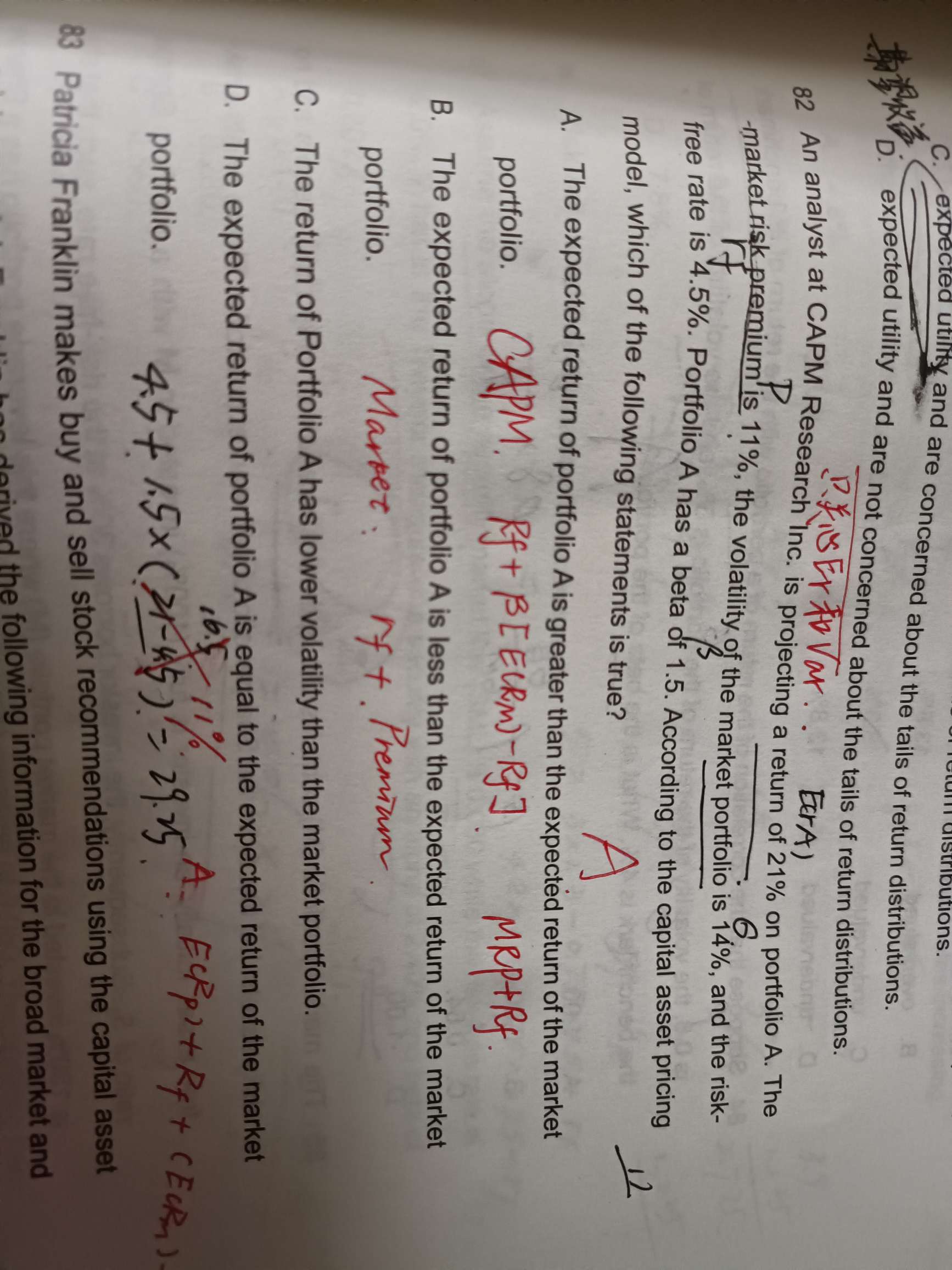 老师好 请问这里的的期望收益和市场组合的期望收益有什么区别?为什么市场组合的期望收益是11+4.5