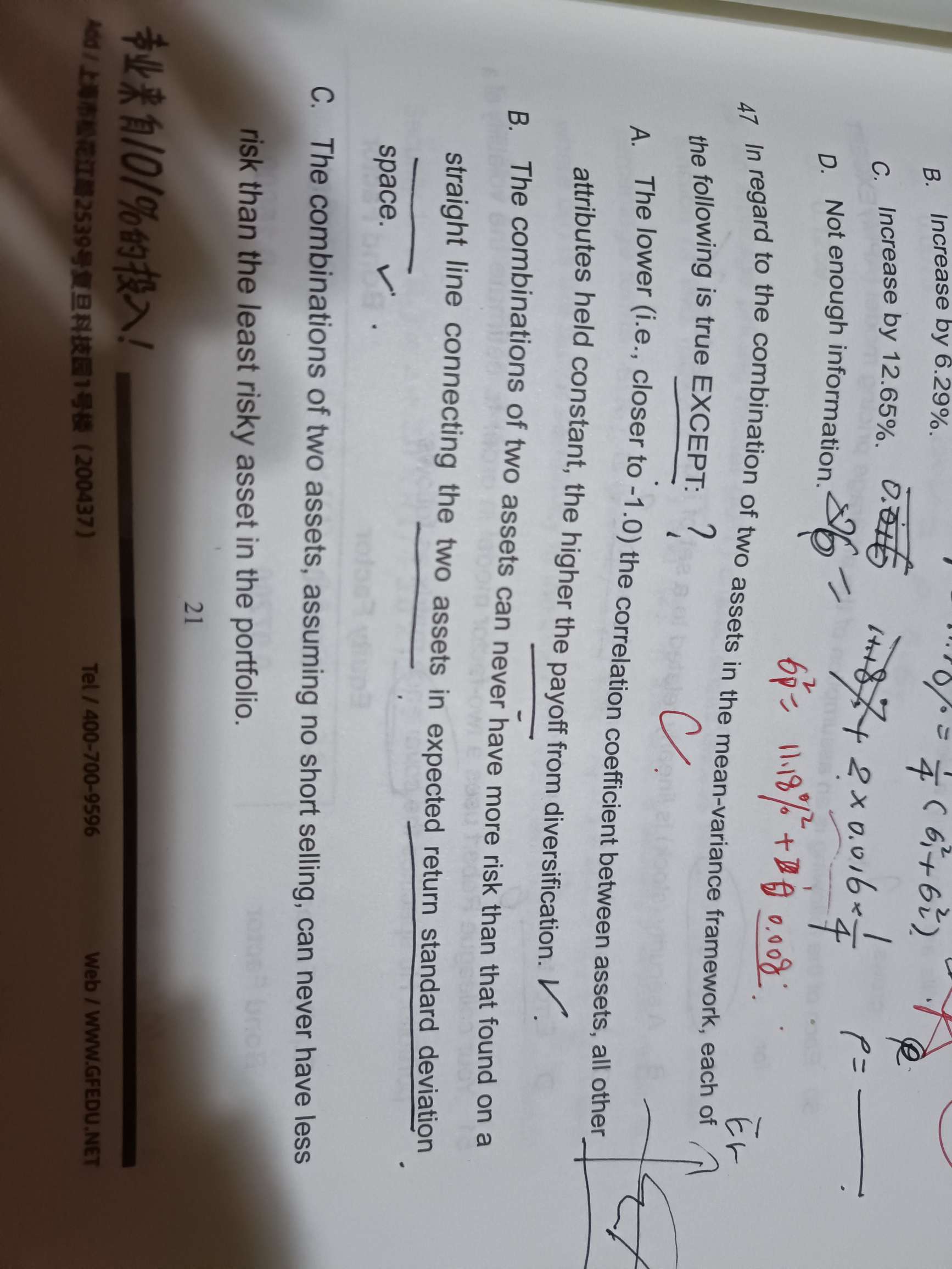 关于D选项原话是这样的:“At the same time, the correlations decreased for CDOs of investment grade bonds. The lower correlations in the mezzanine tranche led to losses for hedge funds that were long the mezzanine tranche.” 那D应该是对的吗?