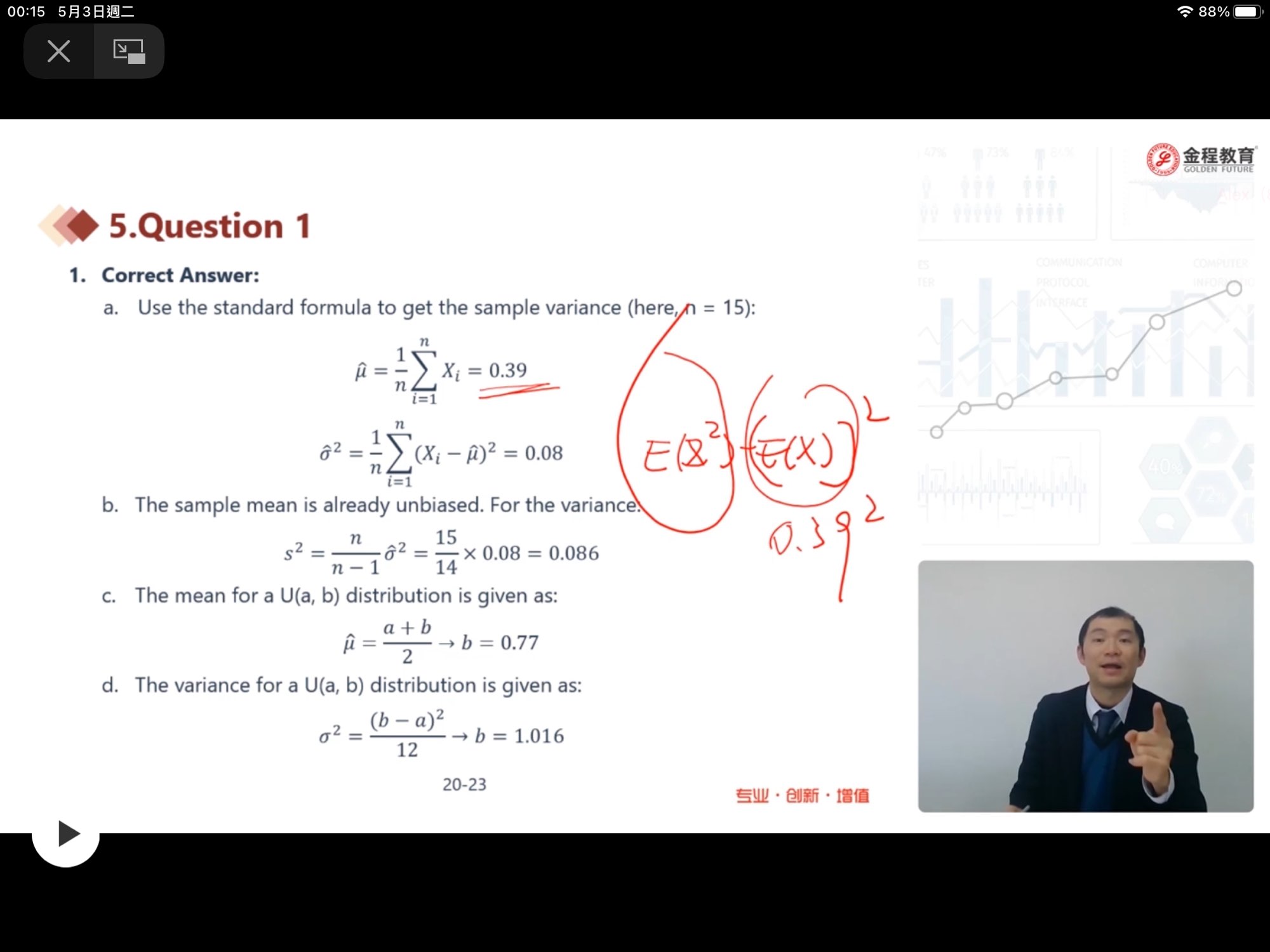 我不太明白sigma怎樣計,亦都不明白老師的這條公式為什麼全部都可以用這條公式,2分之b=0.39是怎樣來的,另外小題C和D亦都不明白怎樣計算,這些都是公式嗎?