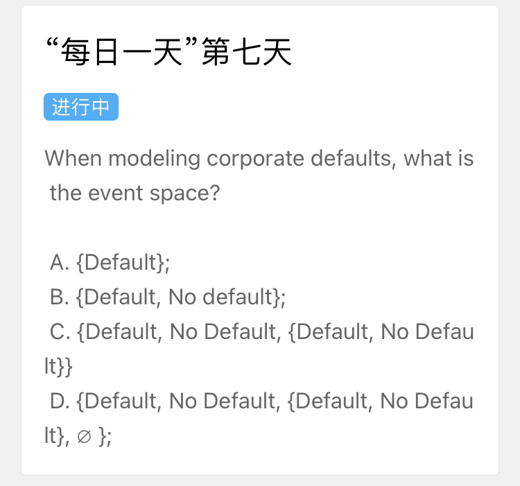 为什么是D选项 集合里面有一个集合是什么意思。基础班里那节课上有讲过这个集合里的集合呢?我只知道违约是一个01事件 有违约和不违约。我的理解有什么不足呢?