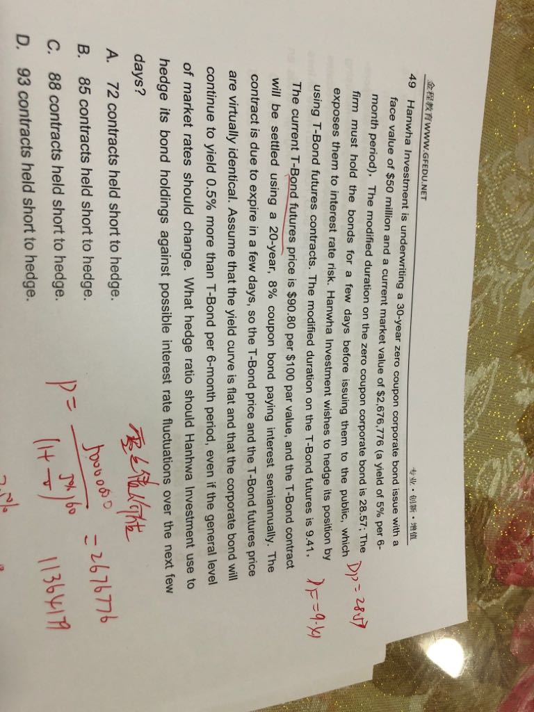 老师这道题我算了好几遍,零息债券的价值是11364179.不是题干给的2676776.不知道问题出在哪了就是用50million除以1.025^60