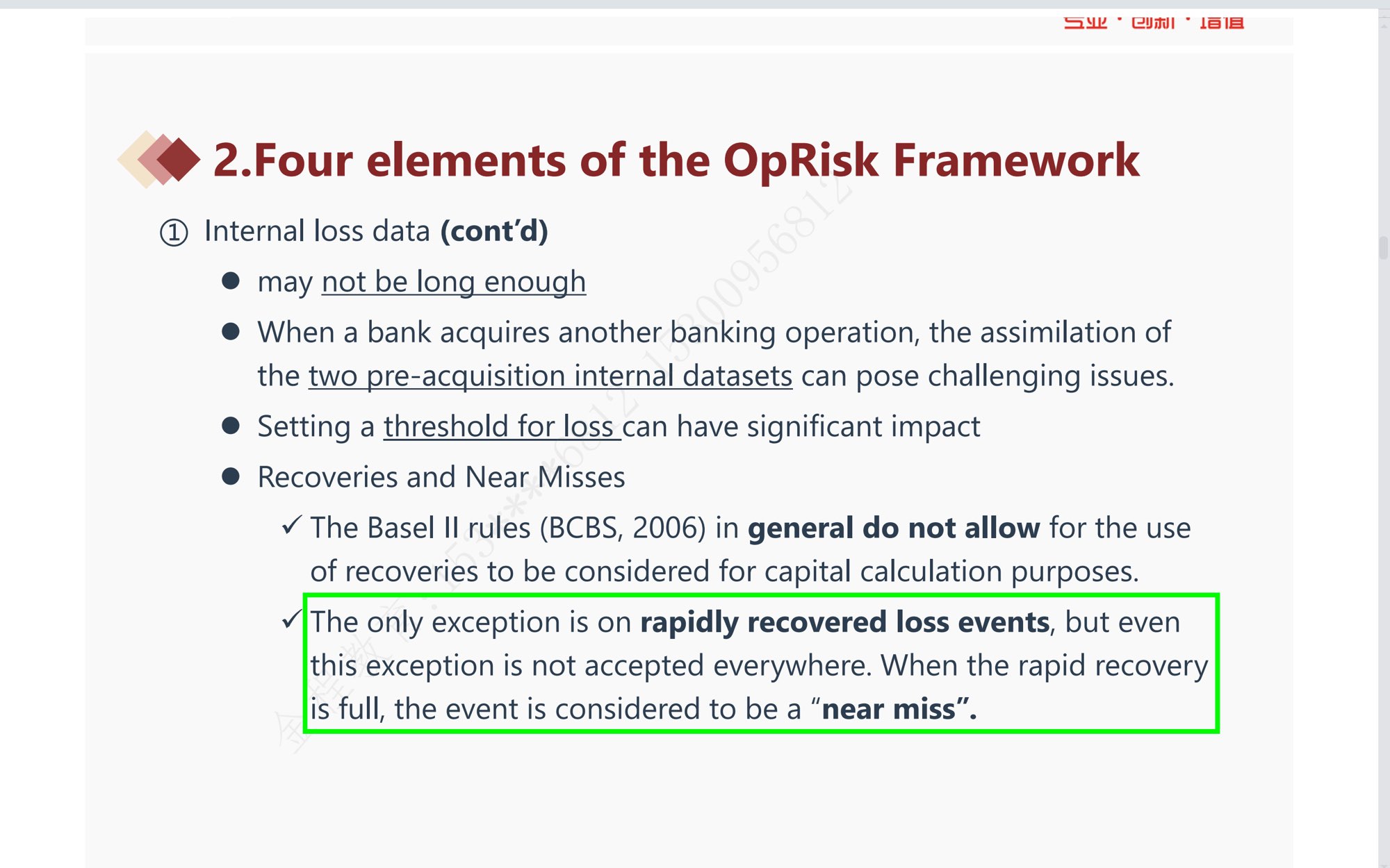 - 不理解这里为什么Risk Chaampions & Business-Line Managers 负责monitor Operational Risk Function Operational Risk Committee 负责act 难道不应该是一线业务人员负责act,然后上一级负责monitor更贴切嘛