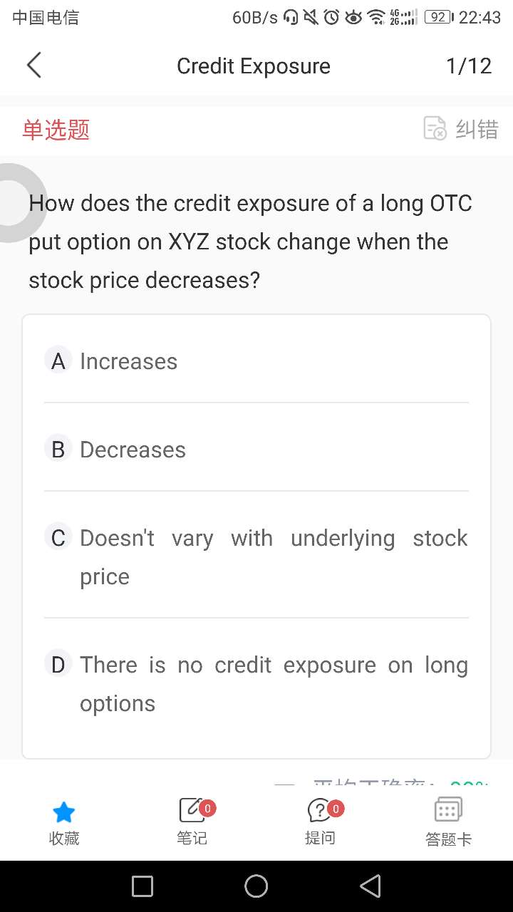 请问老师,讨论long方的credit exposure前提不应该是long方赚了钱吗?题目没说标的价格小于put的执行价格,credit exposure可能是水平线