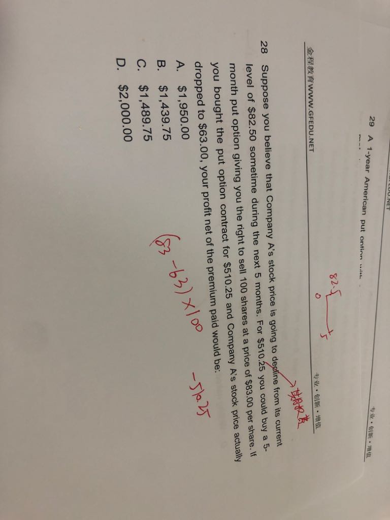 老师这道题题目没有说是美式还是欧式看跌期权,要是美式不需要折现,但是欧式就要折现了啊,是不是因为题目没有告诉无风险利率所以不用考虑折现,还是说题目没告诉就默认美式看跌期权?
