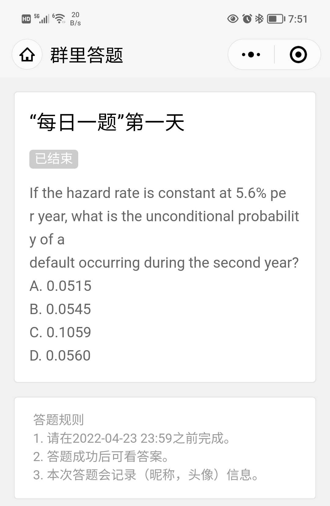FRM问答包含在线课程、FMR通关课程、FRM试题等所有FRM相关问题,每个问题老师均会在24小时内给出答疑回复哦!