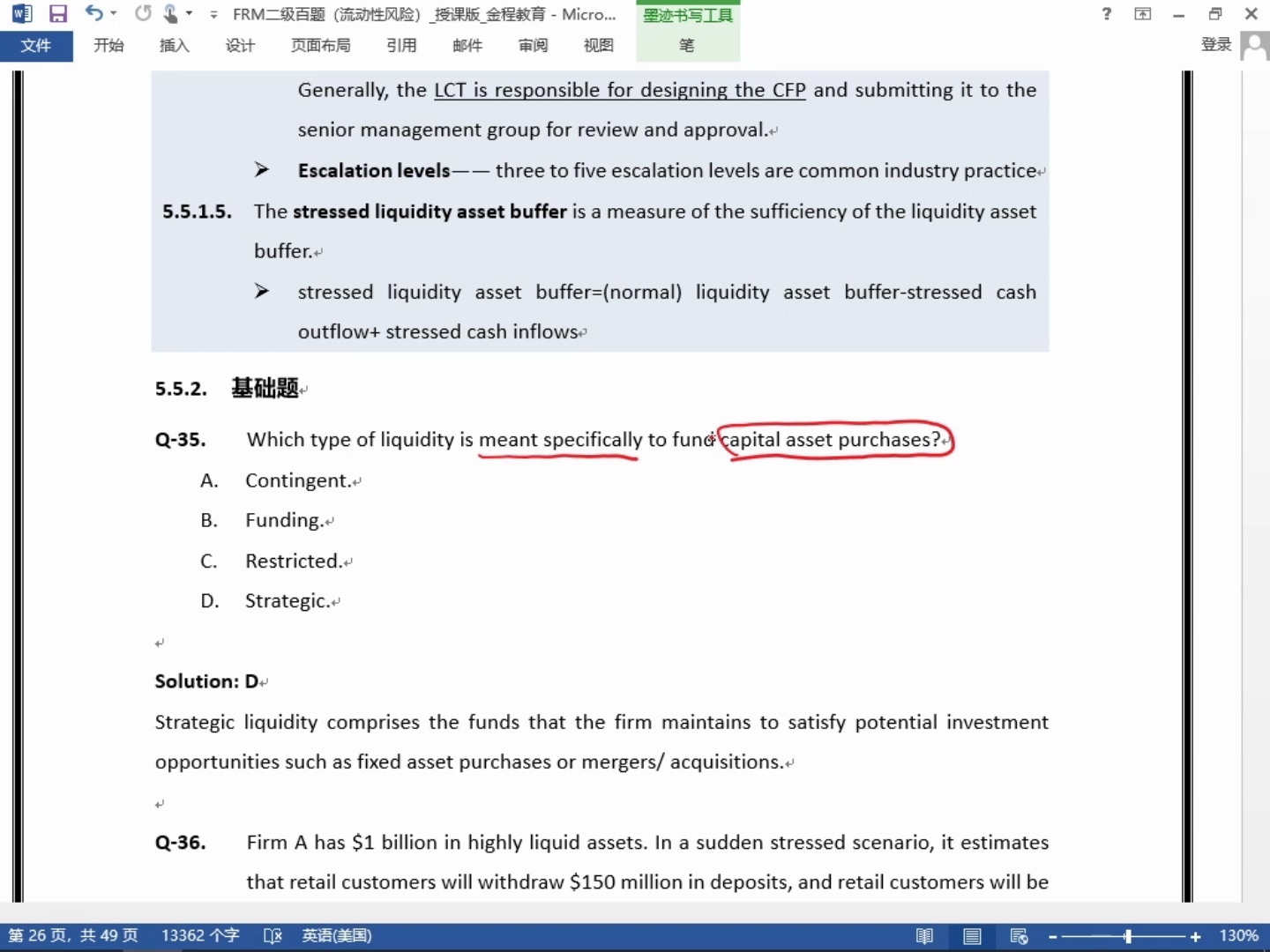 Q8,题干没有说要算压力情况下的cost of liq啊,为什么讲解直接默认的是用压力情况下的计算公式,而不是用正常情况的公式呢。