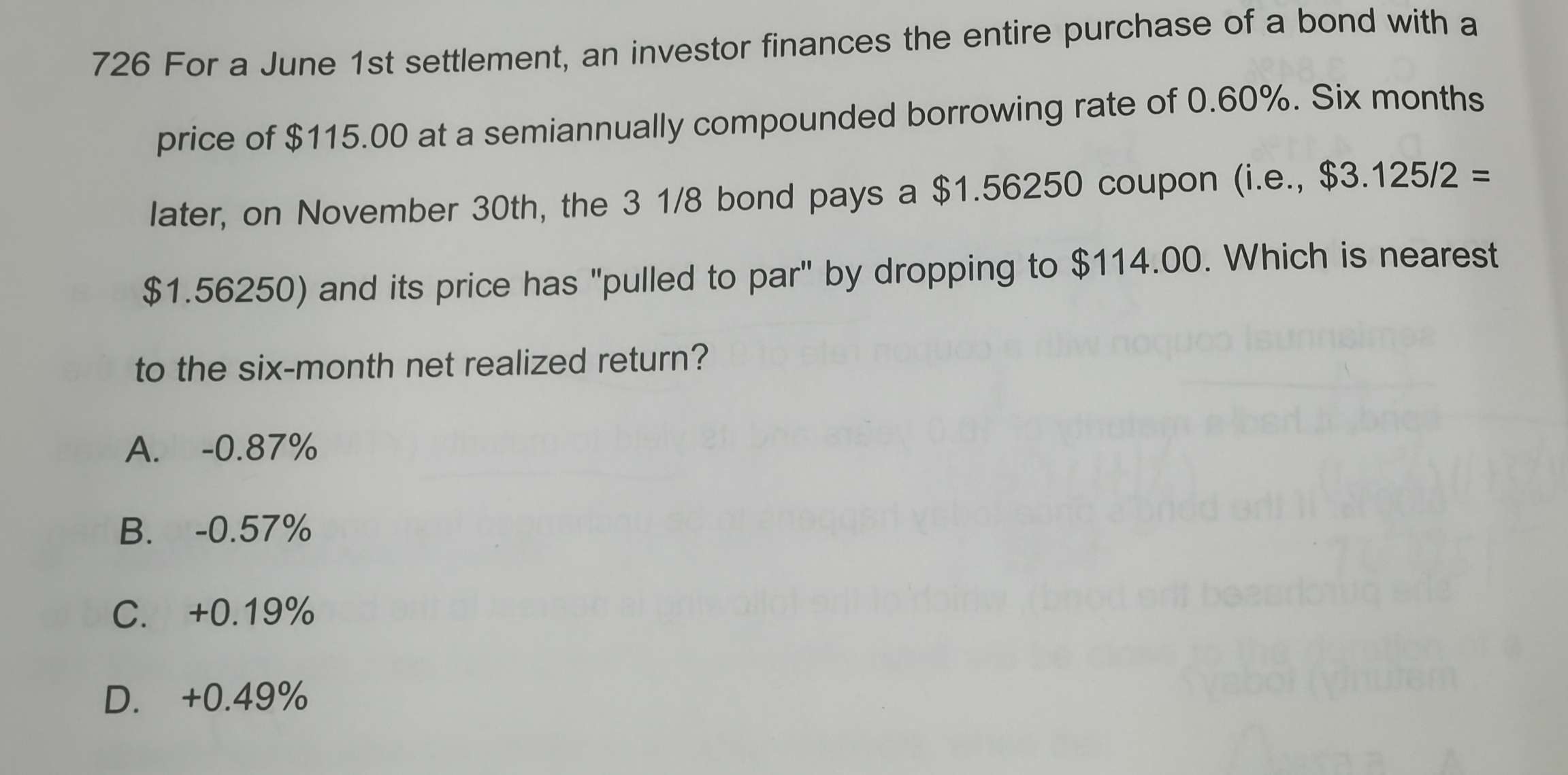 已回答6个月的forward price> spot price, 不就是说 T<6个月时, r>lease rate (l)的吗? T>6个月时,随着lease rate (l) 的增长,才有r<l, 所以price 不应是先升后降 ,所以选D吗?