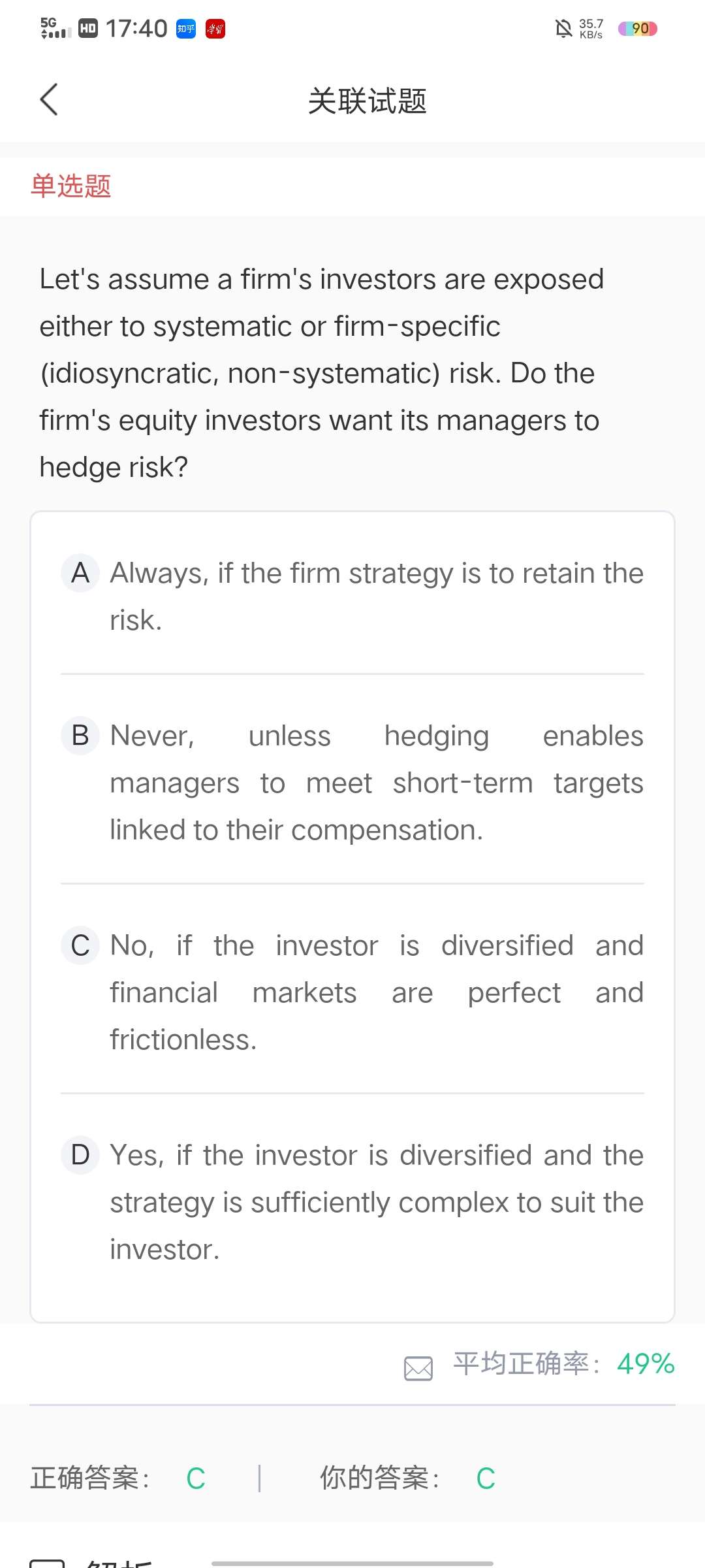 老师这道题可以这么理解吗:我作为投资者如果只投了进口公司,就属于“未充分分散化”,我会面临进口公司独有的非系统风险。如果既投了进口公司又投了出口公司,就相当于分散掉了风险,属于“充分分散化”了?此时我只面临系统性风险了?(金融危机)