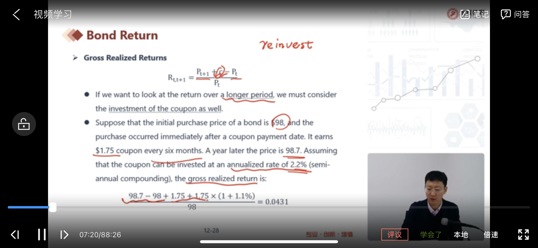 为什么视频里的题目 gross realized return 减去借款成本不等于net realized return呢 而课后题的gross realized return 减去借款成本等于net realized return 。所以 gross realized return减去借款成本等不等于net realized return?