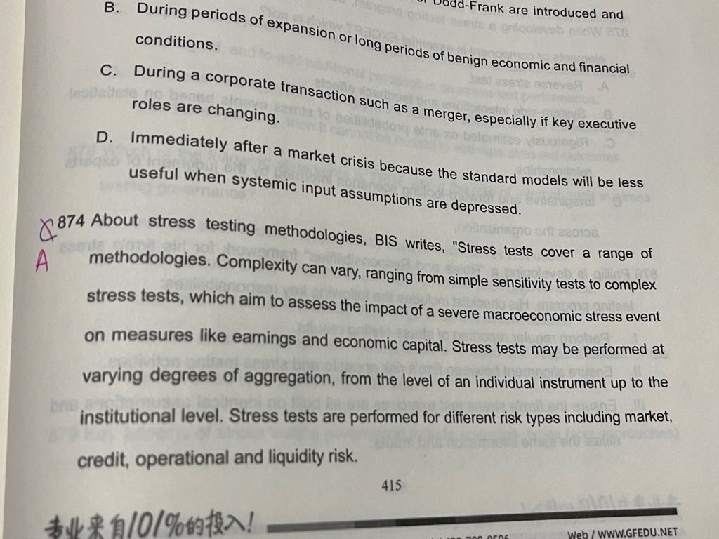 873为什么不是d?不是金融危机后才更加强调压力测试么
