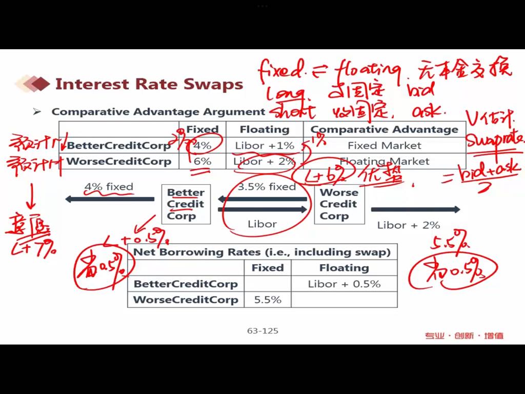 为什么worse在借浮动上有优势啊?是因为better在借固定上优势更明显所以better借固定worse只能借浮动了么? 然后想问一下那两个分别省0.5怎么算的啊不太明白