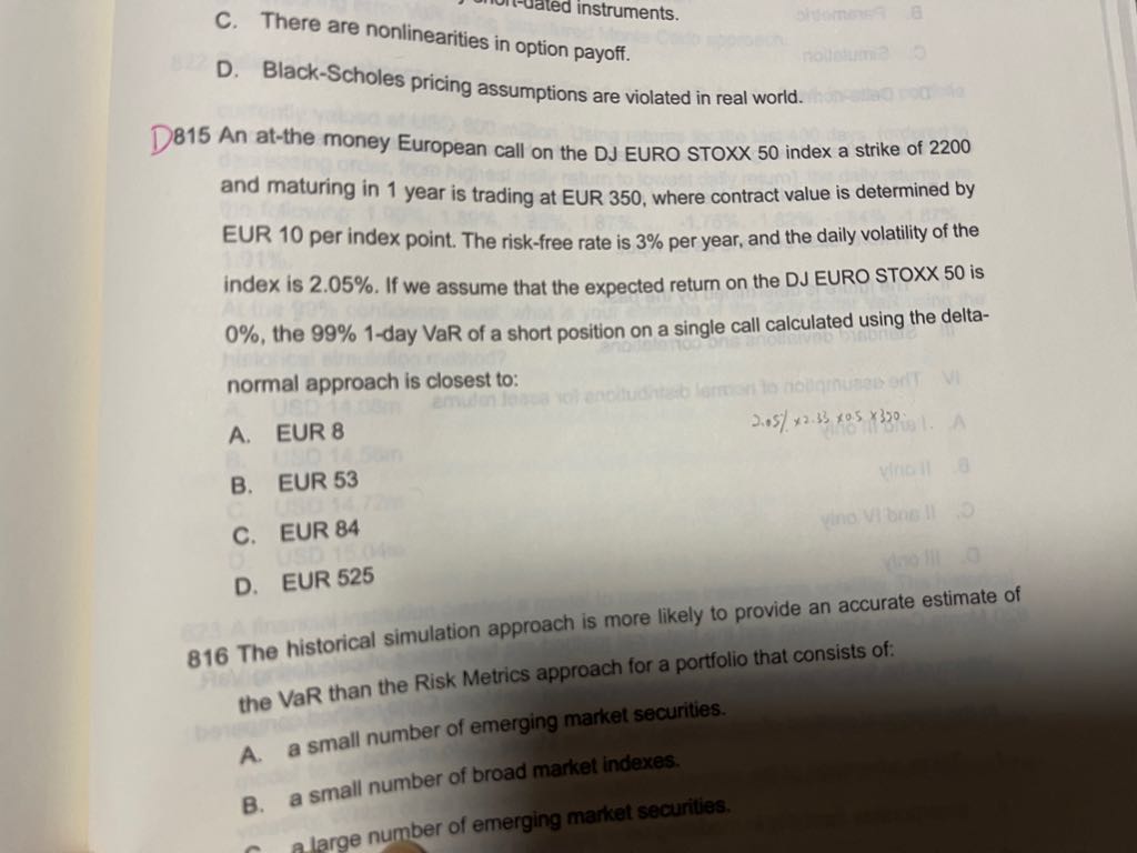 815 这种题到底根据那个金额算var呢?为什么不是350?2200不是执行价格么……那就不一定能达到啊