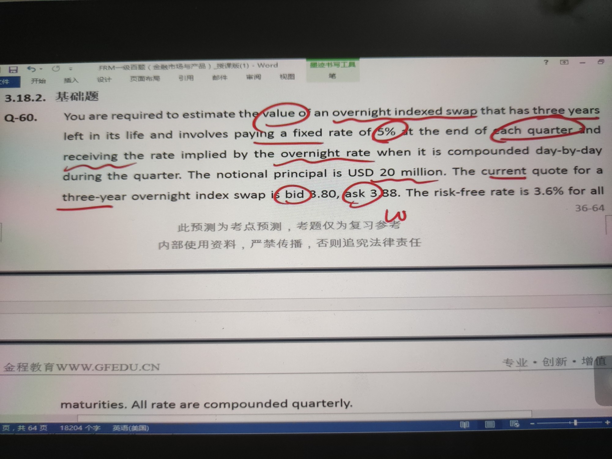 第61题,看2年期互换报价的时候不用考虑Libor吗?2.96%就直接是swap rate了嘛?