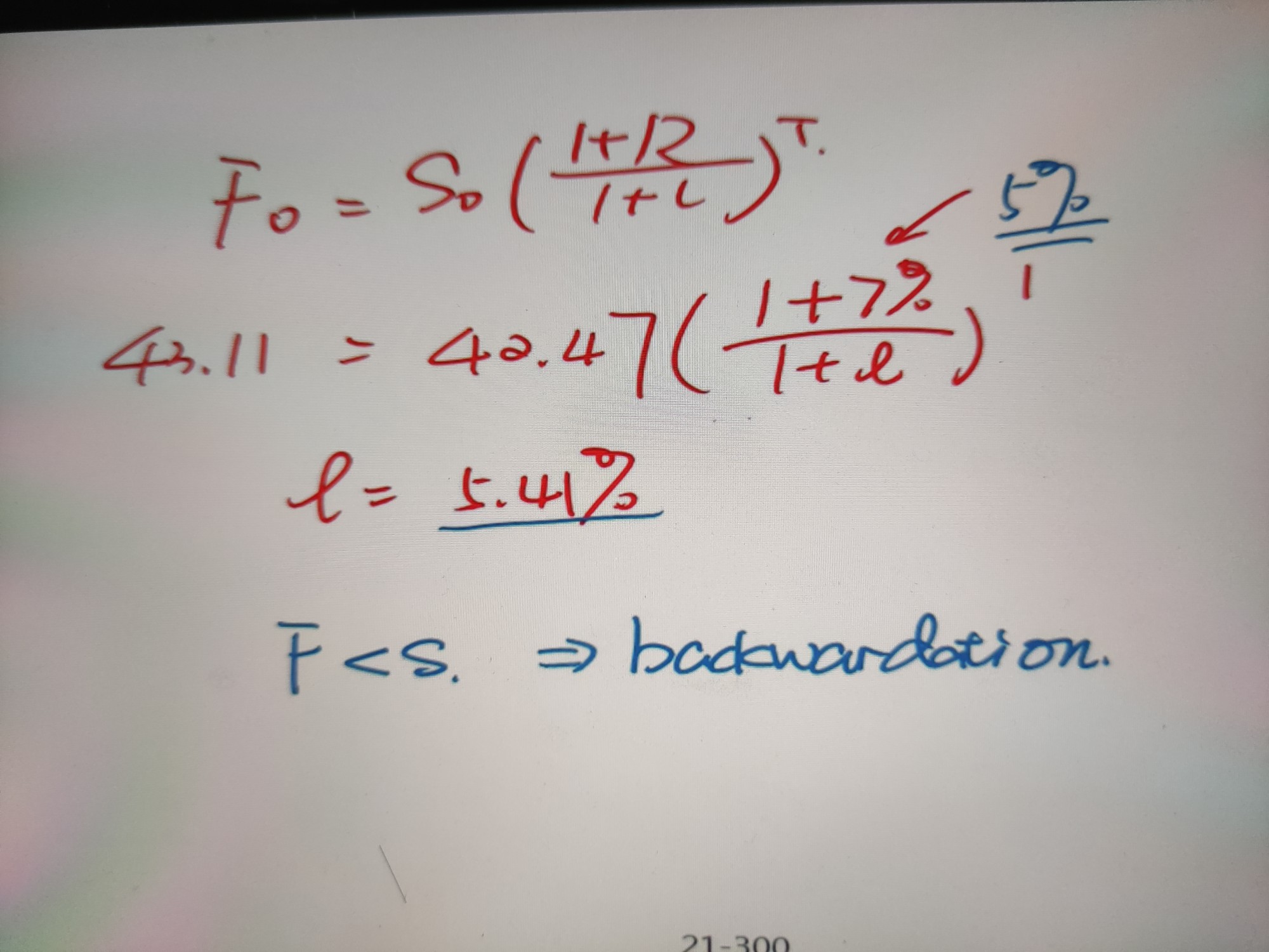 老师,这个图,最开始S和F的等式说明是不具备套利机会的,后来当r降为5%时,右边括号内的数小于1,计算出来应该是等式右边小于左边,说明S<F,存在正向套利吧,哪里理解不对呢?