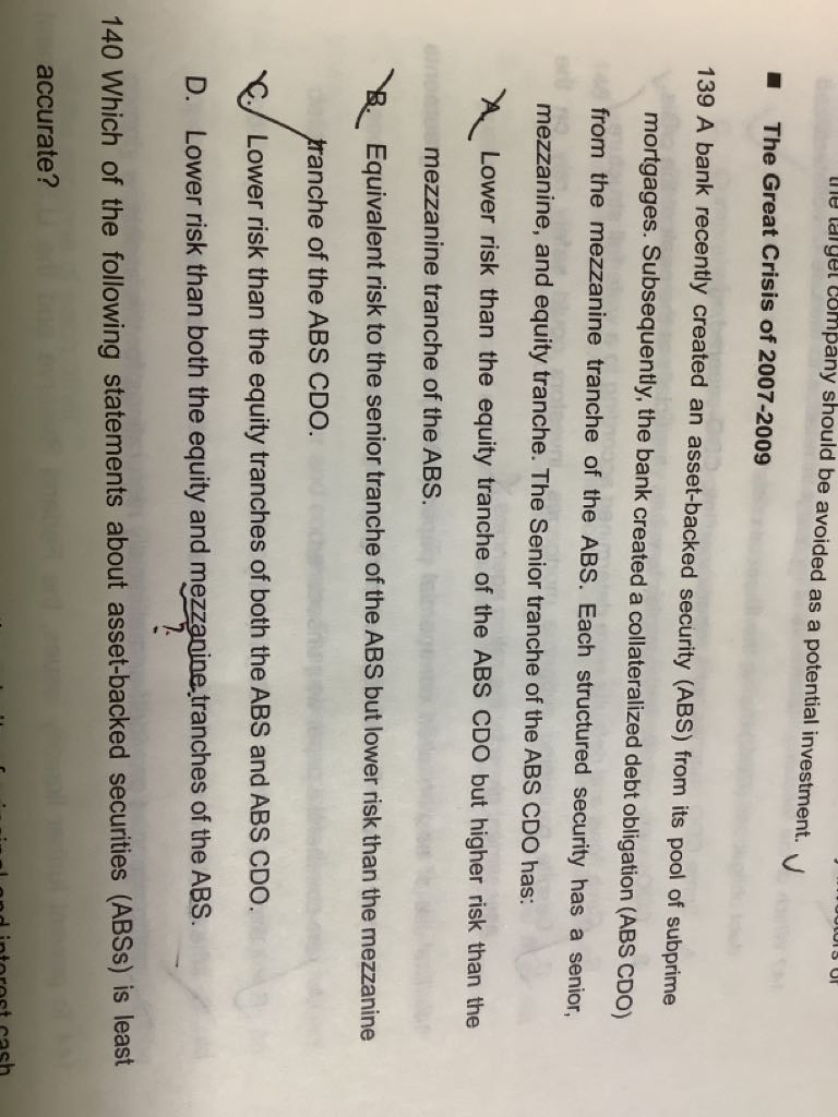 老师,请问ABS CDO的senior tranche与ABS的mezzanine 相比,谁的风险更大?