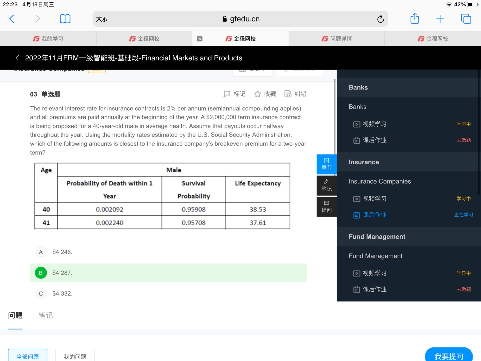 FRM问答包含在线课程、FMR通关课程、FRM试题等所有FRM相关问题,每个问题老师均会在24小时内给出答疑回复哦!