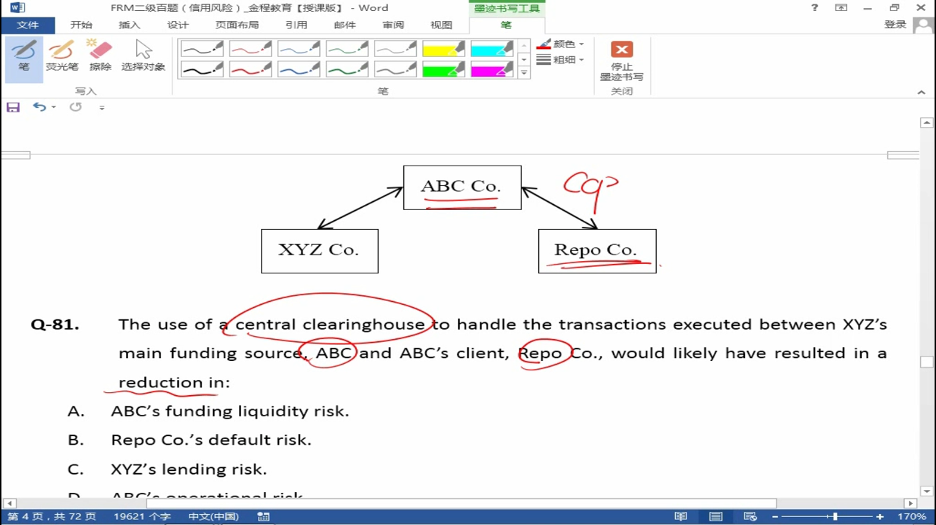 请教:B选项,说的是repo co. 自身的违约风险吧?老师怎么说是repo co.的对手的违约风险啊?没写counterparty啊?
