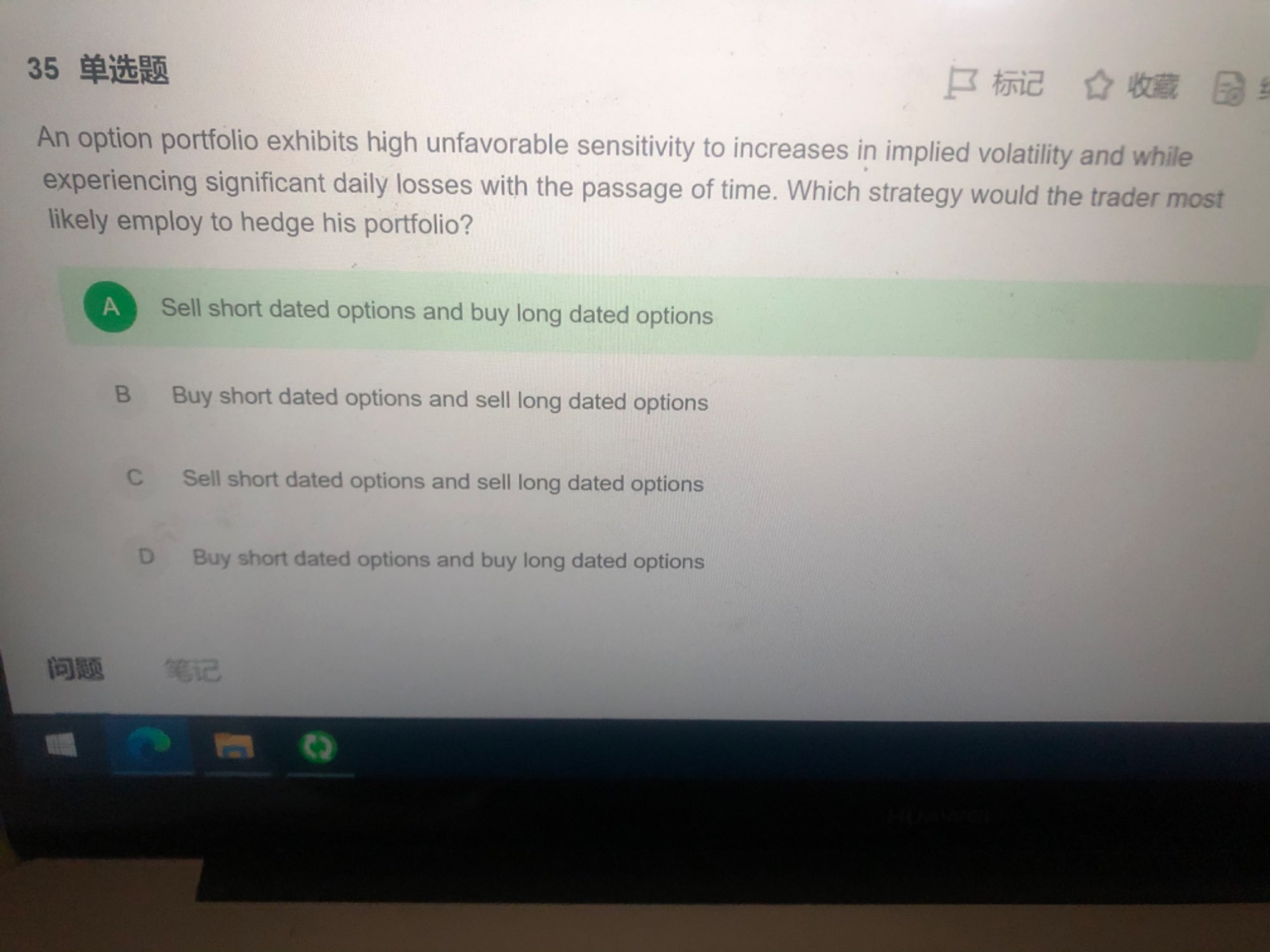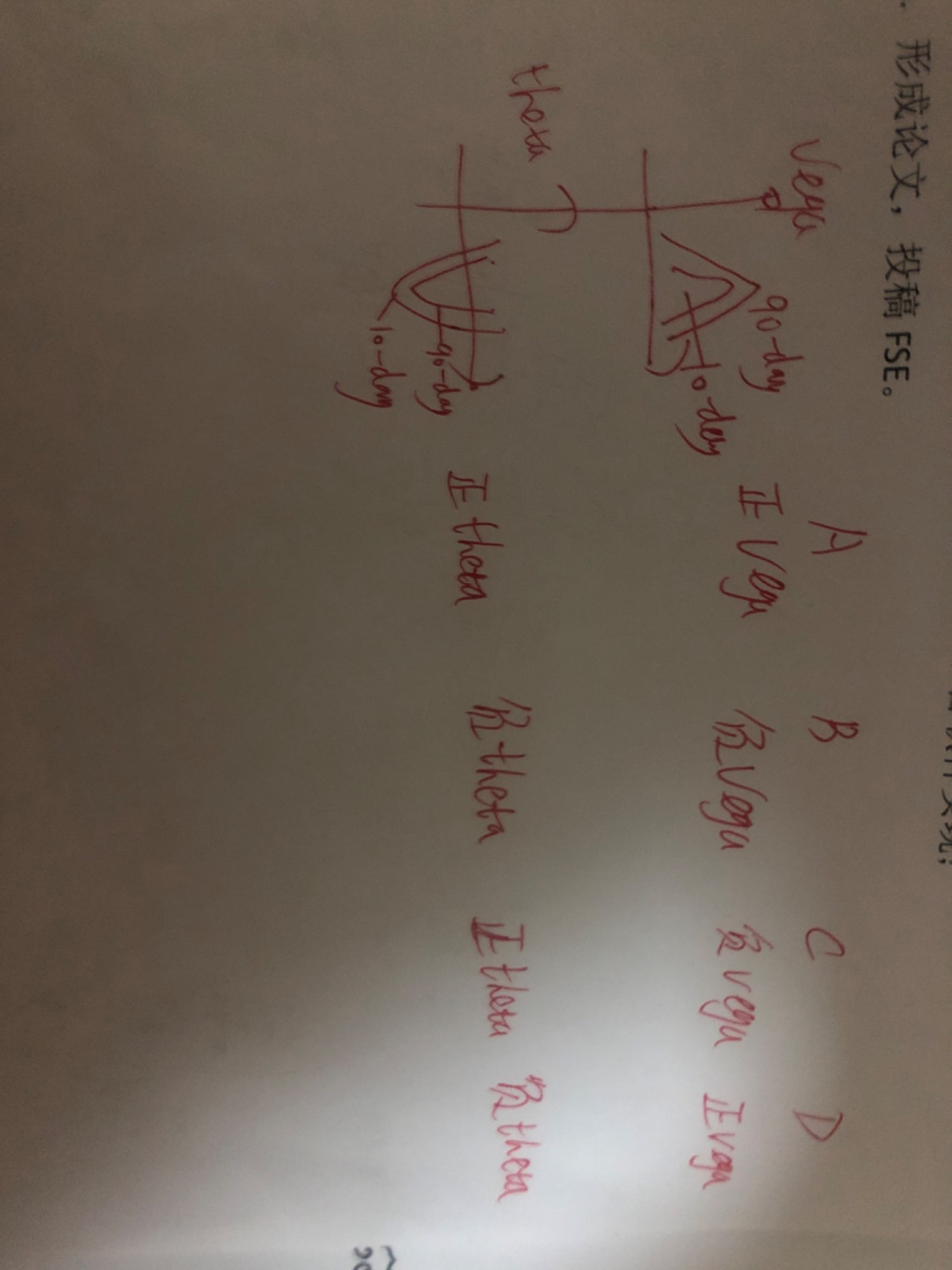 已解决老师题目的讲解和您的讲解我都看不懂,我理解的是如果题目翻译是期权组合负vega和负theta.那我要对冲这个组合的话我就选A正vega正 theta.请您看看我写的四个选项的对冲结果对不对