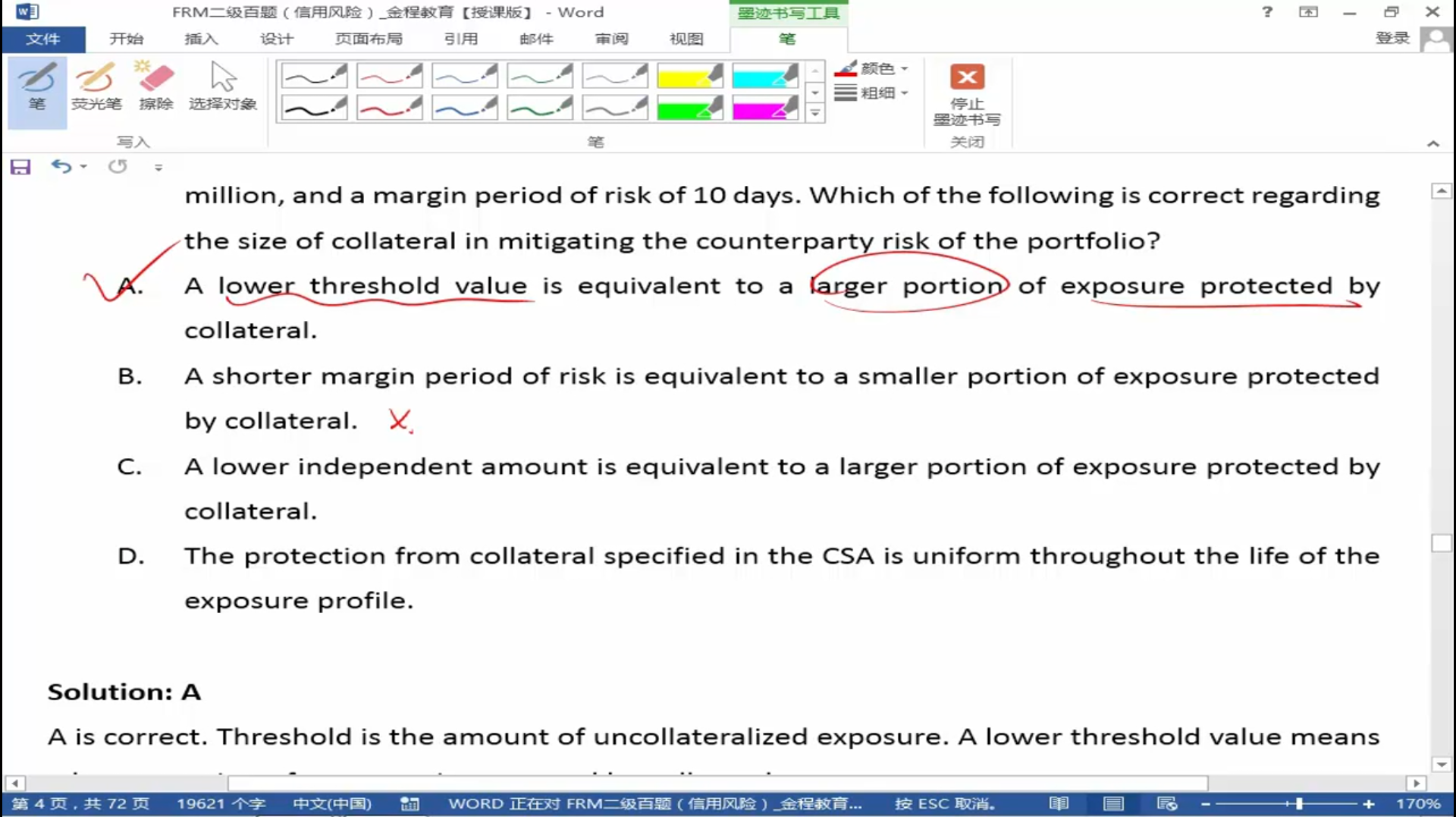 请教,抵押品的持有期越长,保护越充分,因为等到真的违约了,抵押品(抵押到期了)没有啦,就没有保护啦,老师解释B项时为啥说持有期和保护效果无关呢?