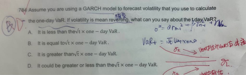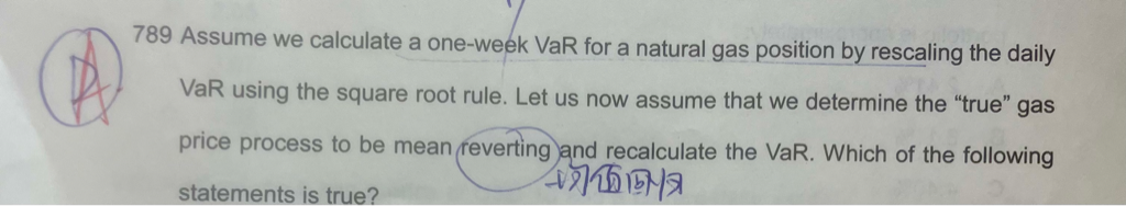 老师,请问为什么第一题均值回归会导致VaR会偏大也会偏下,而第二题VaR会偏小呢?