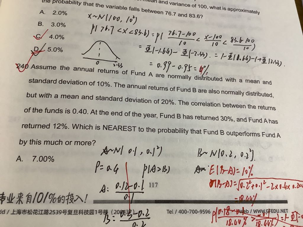 老师,请问第一道题是什么意思,怎么做? 第二道题看答案感觉是将B-A视作正态分布,但是题目中说二者的相关系数是0.3,说明是不独立,那为什么可以这样做呢?