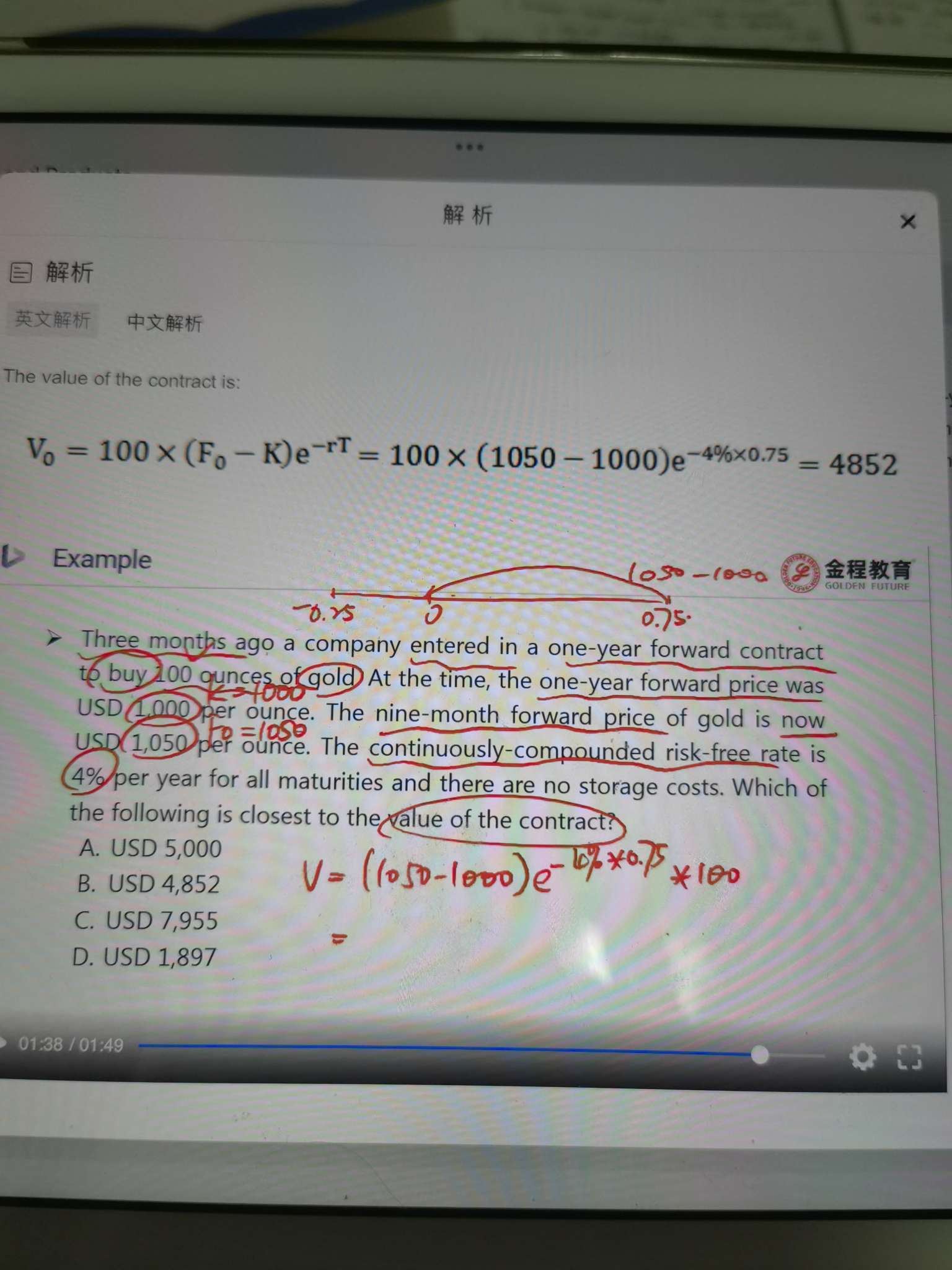 折现的时间为什么是0.75,不是1?合同是在-0.25时刻签订的,不应该折现到签订日吗?