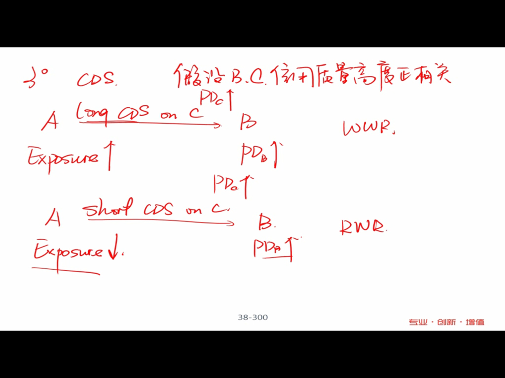 不了解为什么 B的违约率上升,导致Long CDS on C的价值上升,为什么A的风险敞口反而上升