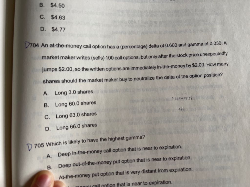 704题 价格变化delta会变化,但是gamma不是也应该变化吗 为啥还能用0.03乘以2呢?