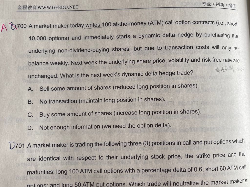 第700题是什么意思呢?ATM的期权 delta近似0.5 基本上也不随着时间变化 为啥还需要卖股票呢?