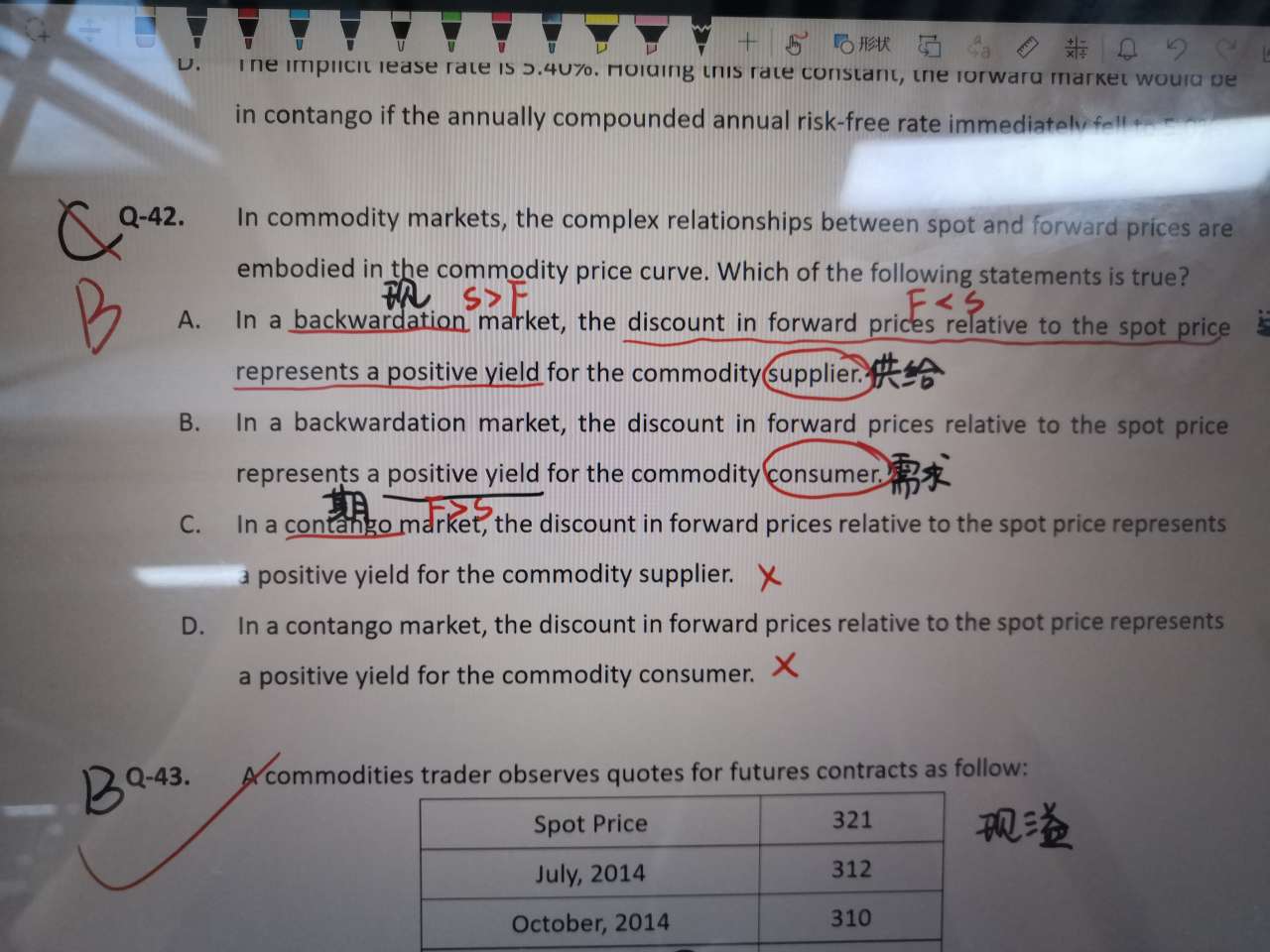 n不理解为什么 the discount in forward price relative to the spot price represents a positive yield 说明F<S