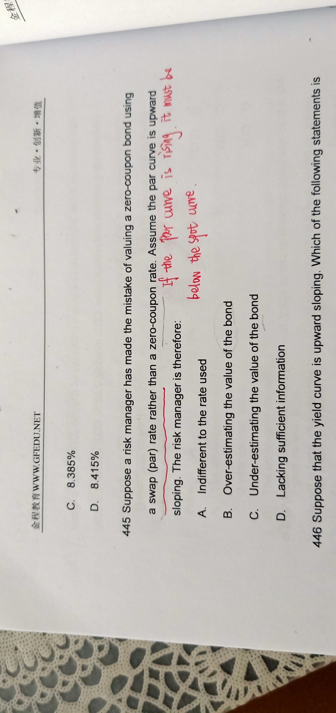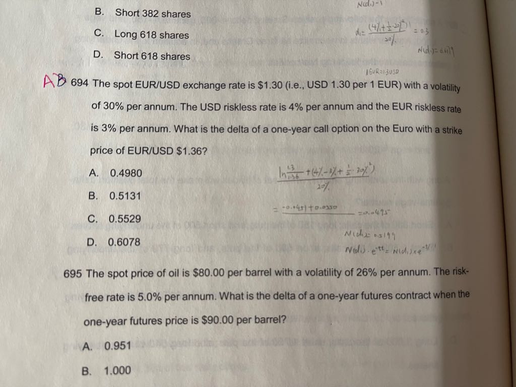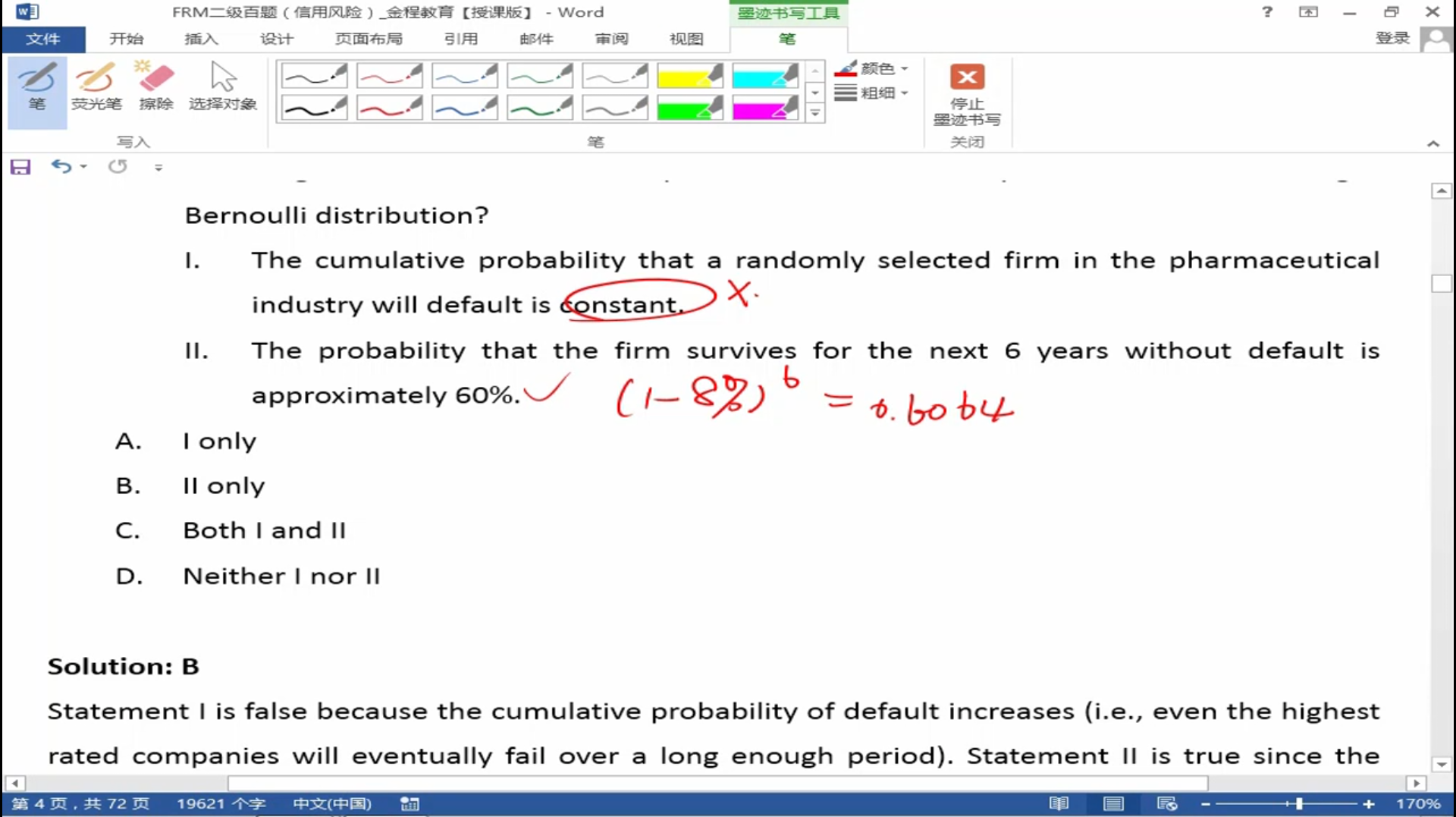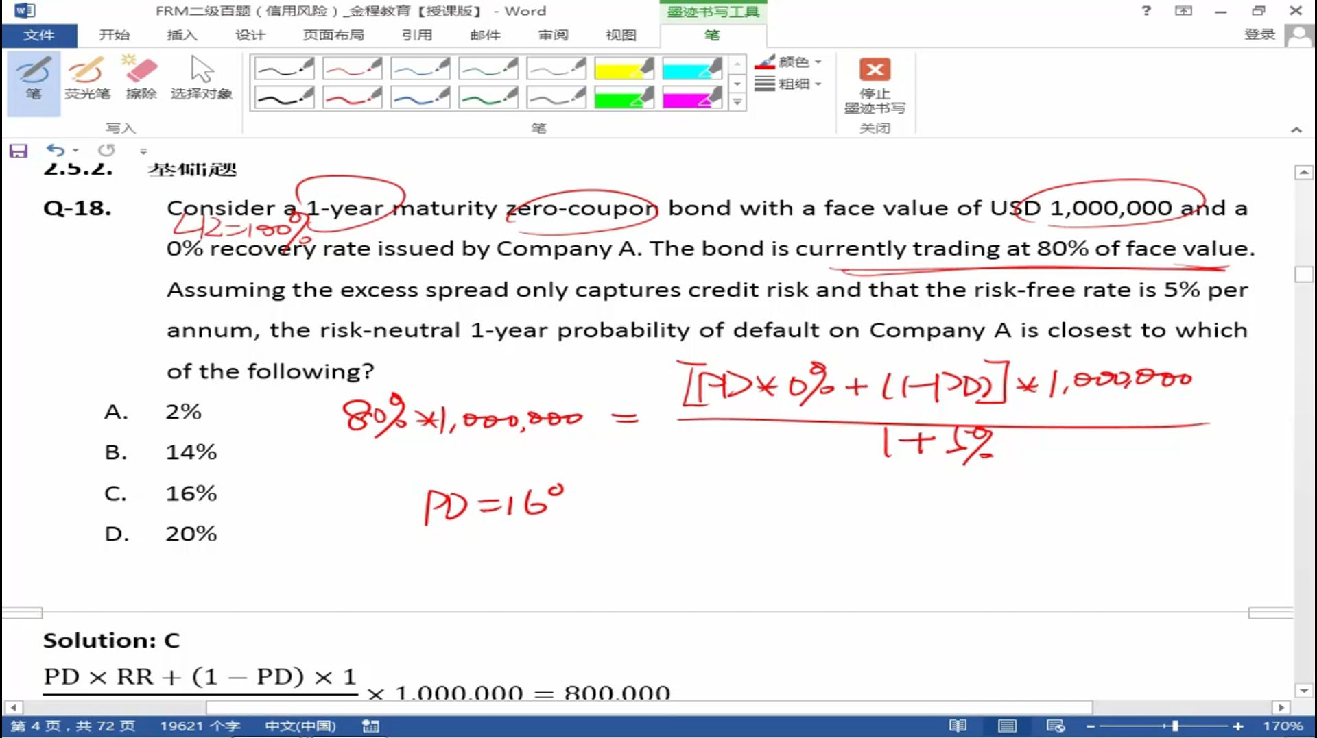 老师您好,我想请问下,为什么这个题相关系数不用变成-0.5,因为他说sell A,buy B,我记得课件上有一个example,用的负的correlation,因为他说long A and long B的相关系数是+0.8,计算sell 和 buy 的Var我们用的-0.8,为什么这个题不用呀,谢谢