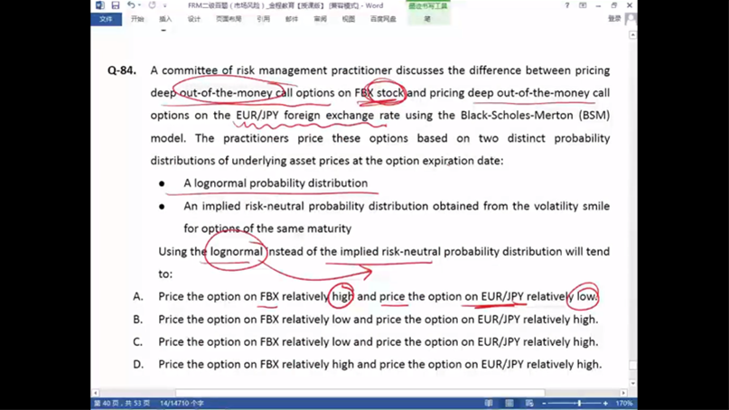 老师,这个题在老师讲解里画的这个图(p2 )说的是因为用lognormal去定价所以价格是偏高的,但是这个图的纵坐标不是波动率吗,所以不应该是因为用了lognomal定价,因此估计的波动率偏高,所以价格偏低吗