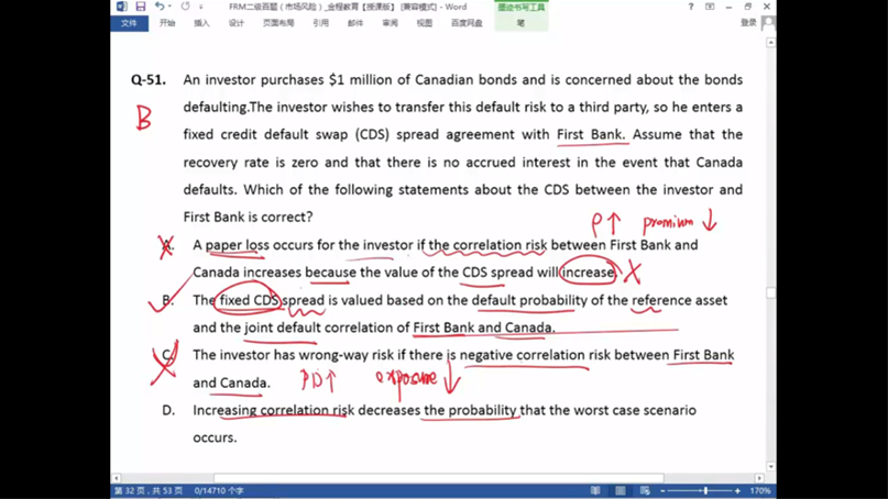 这个C选项为什么是exposure下降呢,investor因为first bank的低违约概率,所以可以拿到赔付,不应该是可以获得现金流入么,那不应该是exposure变大吗