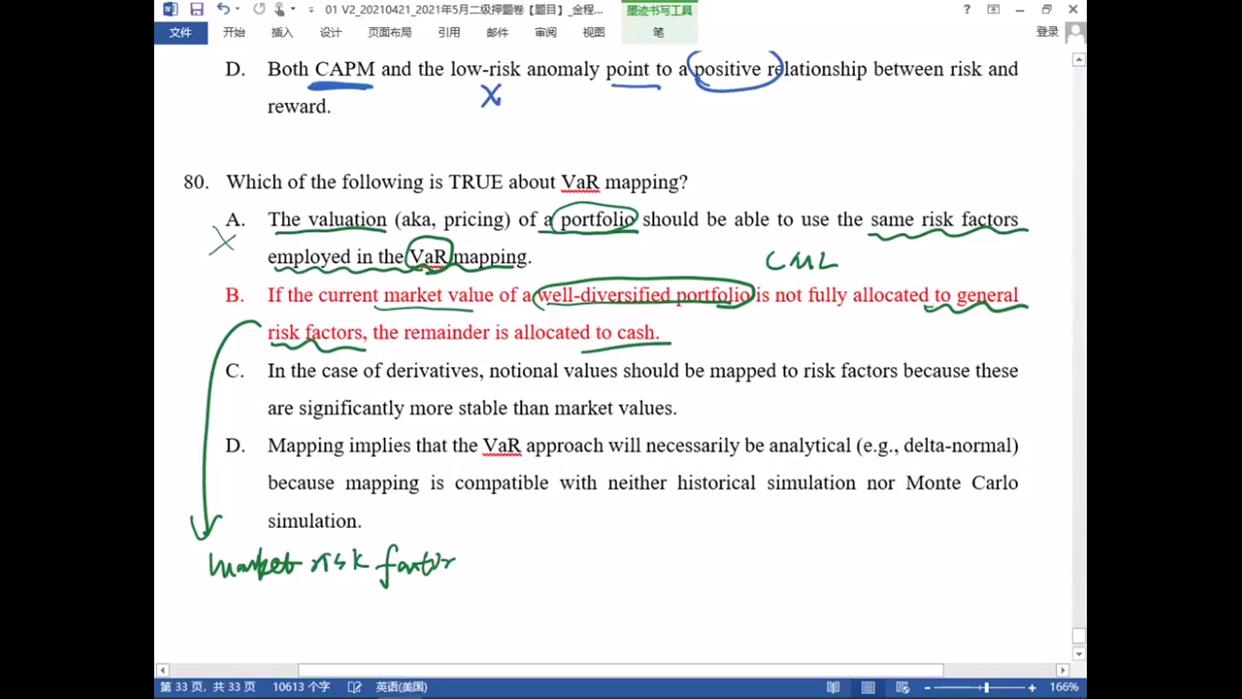 已回答老师,您好,这道题的B选项,老师讲课时说well-diversified portfolio是在CML线上投资,如果general risk factor指的是market portfolio,那risk free asset能等价于cash吗?感谢老师讲解一下