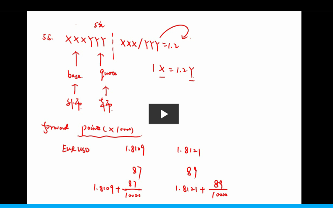 老师,汇率的问题又有点蒙了,XXXYYY中X是base currency不是应该是本币吗,视频中讲X是外币,那X是外币的话,远期汇率的式子是第二张图的算法吗,麻烦老师再帮忙捋一下外汇汇率,考试中都是这样标的吗?