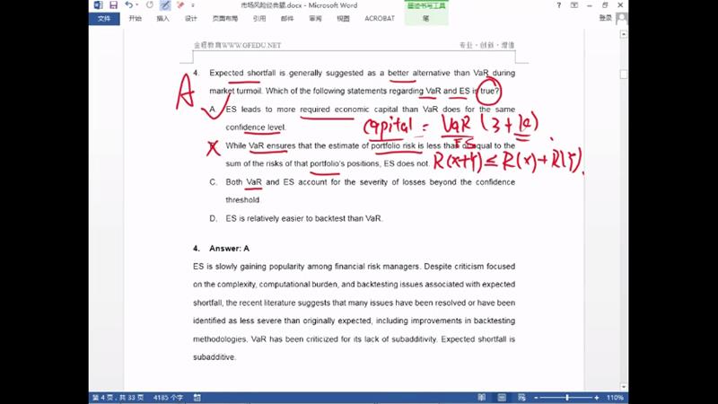 这里面A选项有可能var下降惩罚因子上升,那如何比较ES和var的capital呢?感觉都不可比