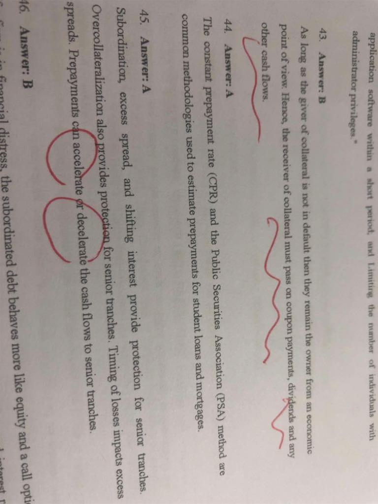 45 why is prepayment can accelerate or decelerate the cash flow? If prepayment occur can reduce the interest , the cash much have reduced rather than increase