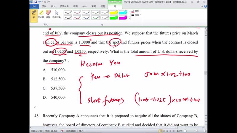 老师,您好,47题问的total amount received 的时点是什么?默认7月末吗?另外在计算short future的payoff只考虑的期初到期末的期货价值的差,为什么没有考虑期货实际交割的头寸?感谢老师讲解一下
