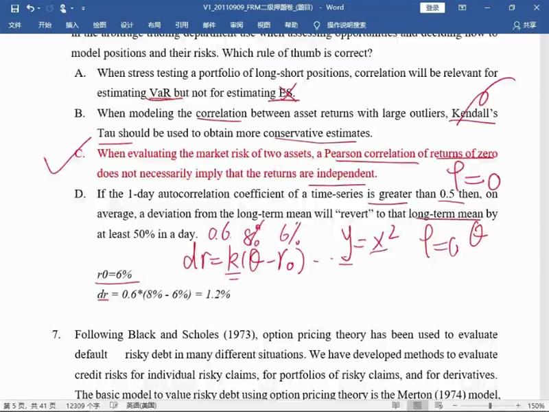 老师,选项D可以再讲解一下吗?K不是mean reversion吗?