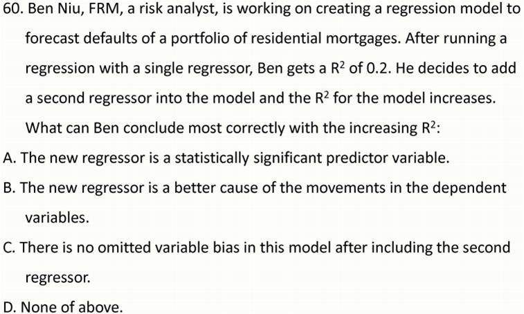 老师辛苦~ 见图,问: 1、B选项说的是什么意思?讲题老师说是,新的变量对因变量有了更好的解读。 可是,这句话不是说,新变量是因变量变动的原因吗,我觉得,这样说,也没错啊? 2、如果,新增加的变量使得R方增加,难道,也不能说,新增加的变量对因变量有解释力度?
