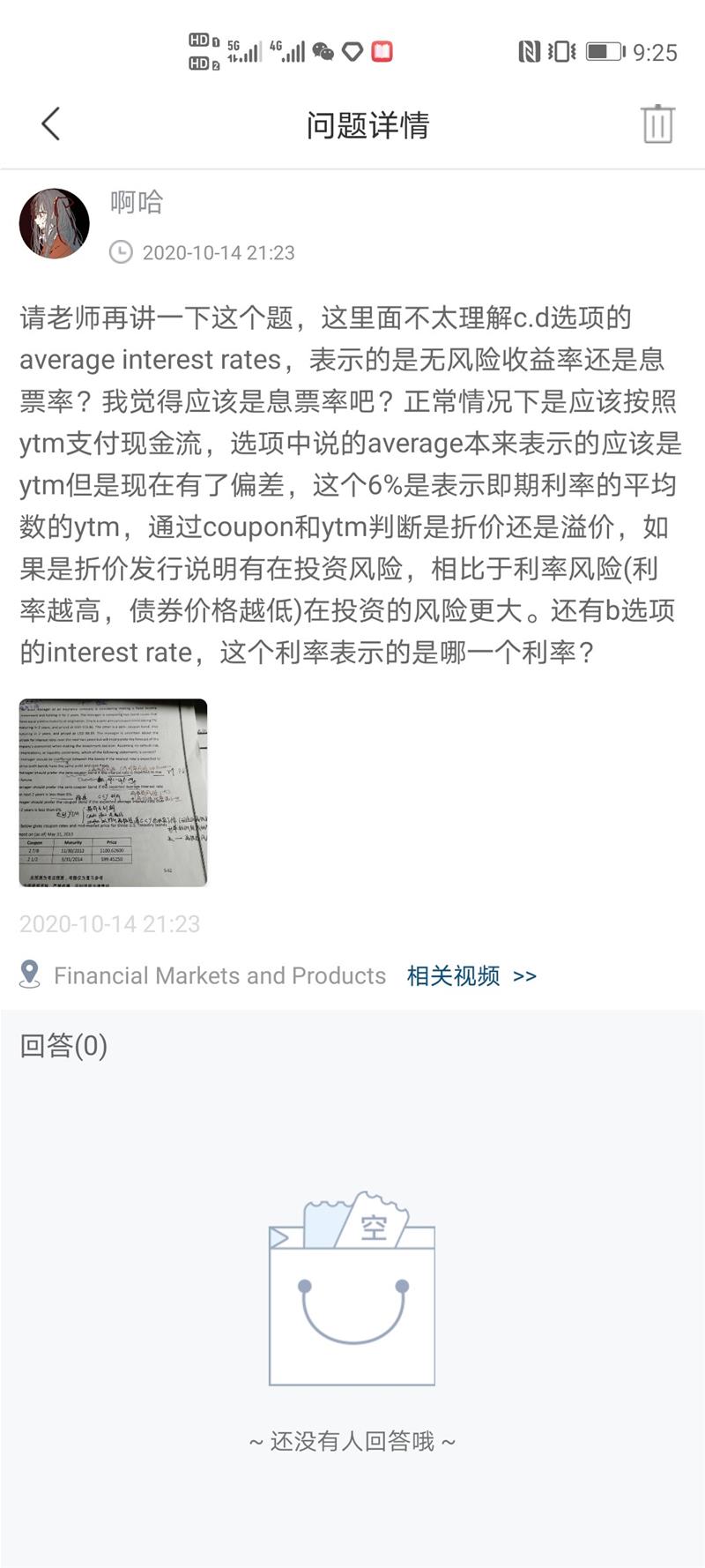 FRM问答包含在线课程、FMR通关课程、FRM试题等所有FRM相关问题,每个问题老师均会在24小时内给出答疑回复哦!