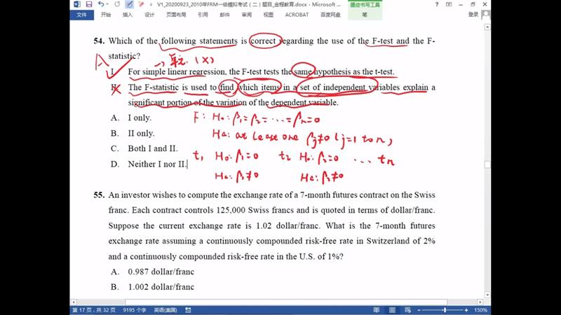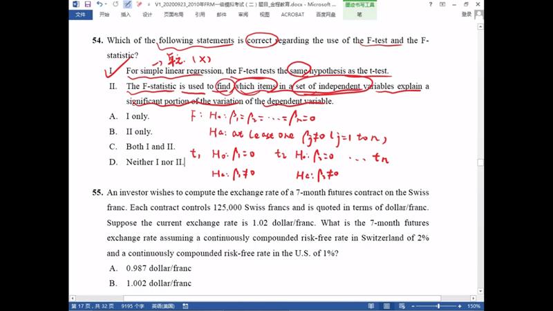 老师 53题 我听老师的解答 已经明白怎么选了 但是题目问的是ftest和f statistic,为什么没有解释这两个关于f的东西呢?一个是test一个是检验统计量,选项里却多了ttest😂
