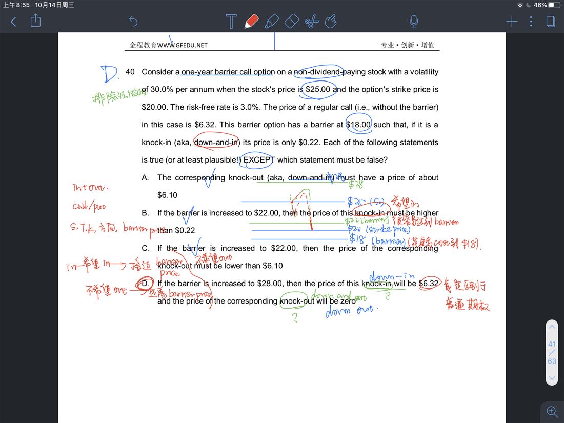 老师你好 想问下 这边题目里面knock-in是说明了只分析down-and-in?那是不是如果题目不说明的话 knock-in是包含了up-and-out和down-and-out两种情况?