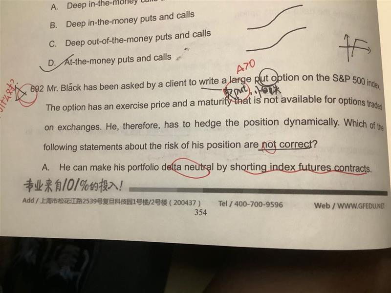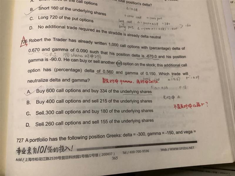 老师我想问一下这种类型的题目,我们上课讲的是先对冲delta,再对冲gamma。为什么这道题先对冲gamma再对冲delta呢?以及在什么情况下,先对冲什么,再对冲什么?如果此时加了一个vega和theta进去,又应该先对冲什么再对冲什么?还是说具体问题具体分析,没有规定先对冲什么再对冲什么呢?
