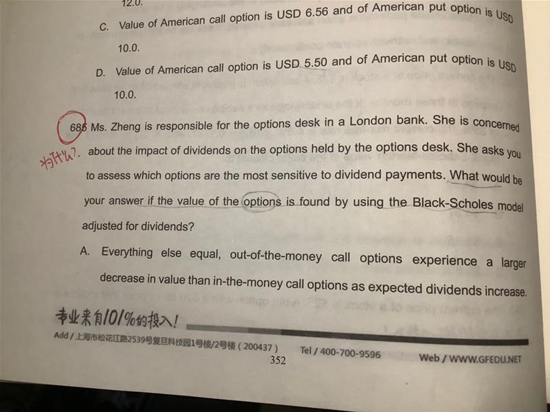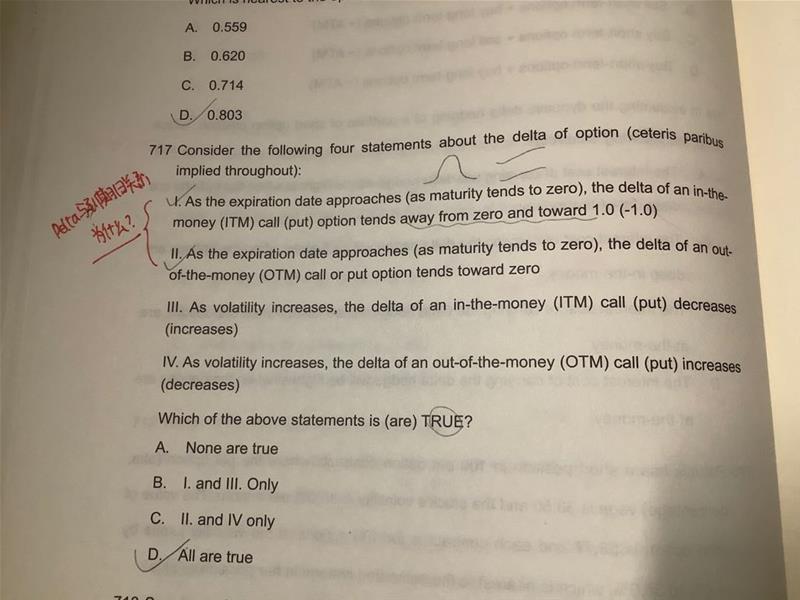我想问一下这道题,选D的原因是不是因为这道题目问的是敏感性,然后所以考察的是delta,而delta在ATM的时候是最敏感的? 还有什么是absolute change in a value? 我之前还看到过 percentage change in a value?这两者有什么区别,分别在什么情况下使用呢?