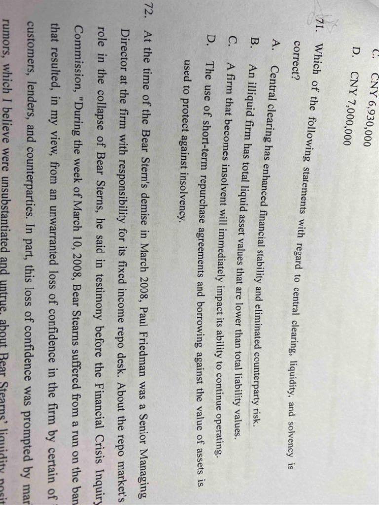 这道题A central clearing严谨的说是缓释交易对手风险吧,不能说消除吧?