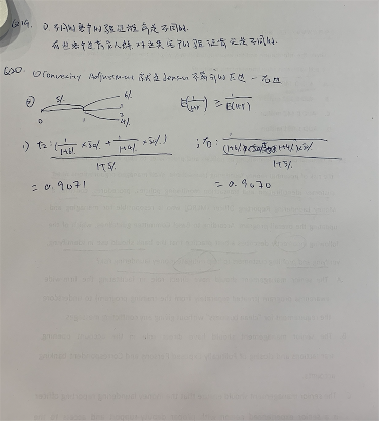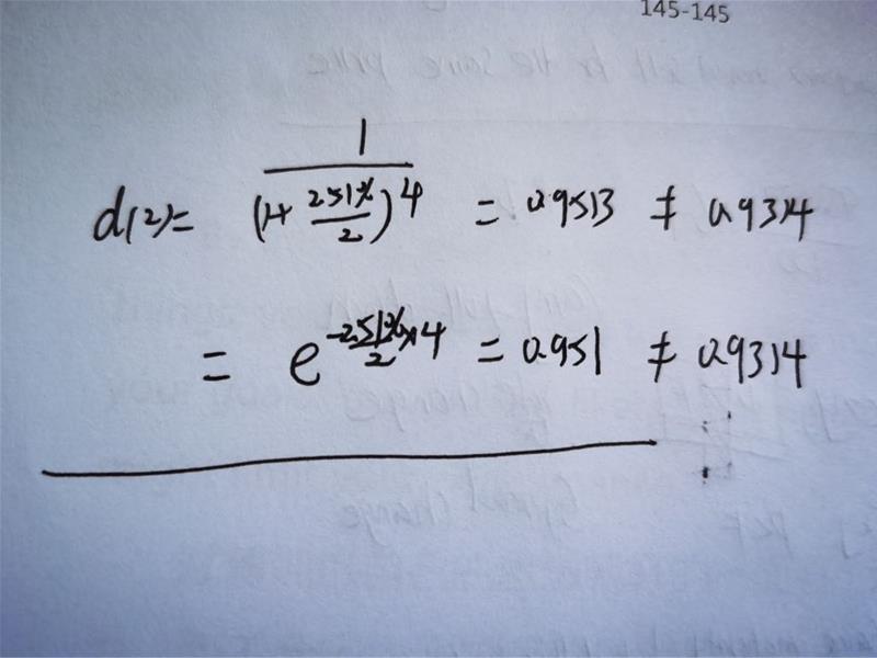 这里的第二年折现因子计算错了,应该为0.9513,计算方法为图一,计算器两种都摁了好几次,如果是我算错了,请指正,毕竟如果我计算器或者公式错了,会很影响我的考试,谢谢
