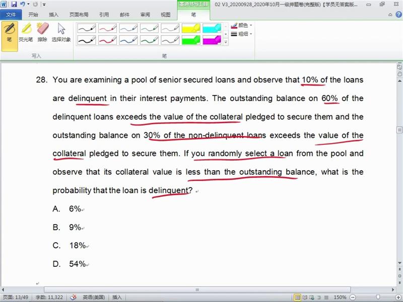 28题啥情况,不应该是60%的delinquent是exceed足额么?30%no delinquent exceed%?老师是不是弄反了?我算的是(10%*40%)/(10%*40%+90%*70%)=6%